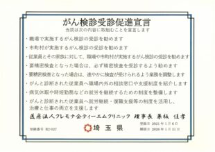 クレモナ会では従業員とその家族にがん検診の受診を積極的に勧めています。